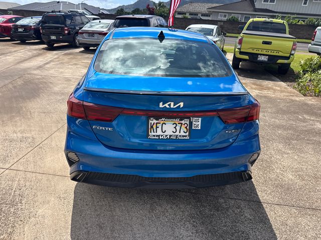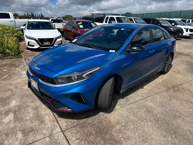Certified. Sporty Blue 2023 Kia Forte GT-Line FWD CVT 10-Way Power Driver's Seat, 17" x 7.0J Alloy Wheels, 4-Wheel Disc Brakes, 6 Speakers, ABS brakes, Air Conditioning, Alloy wheels, AM/FM radio: SiriusXM, Apple CarPlay & Android Auto, Auto High-beam Headlights, Automatic temperature control, Brake assist, Bumpers: body-color, Cloth & SynTex Seat Trim, Delay-off headlights, Driver door bin, Driver vanity mirror, Dual front impact airbags, Dual front side impact airbags, Electronic Parking Brake (EPB), Electronic Stability Control, Emergency communication system, Exterior Parking Camera Rear, Forward Collision Avoidance-Assist - Cyclist, Front anti-roll bar, Front Bucket Seats, Front Center Armrest, Front dual zone A/C, Front fog lights, Front reading lights, Front wheel independent suspension, Fully automatic headlights, GT-Line Premium Package, GT-Line Sport Premium Package, Heated & Ventilated Front Seats, Heated door mirrors, Illuminated entry, Leather Shift Knob, Leather steering wheel, LED Interior Lighting, Low tire pressure warning, Navigation System, Navigation-Based Smart Cruise Control (NSCC), Occupant sensing airbag, Outside temperature display, Overhead airbag, Overhead console, Panic alarm, Passenger door bin, Passenger vanity mirror, Power door mirrors, Power steering, Power Sunroof, Power windows, Radio data system, Radio: 10.25" Display Audio, Radio: harman kardon Premium Audio, Rear AC Vent, Rear seat center armrest, Rear USB Charger, Rear window defroster, Remote keyless entry, Security system, Smart Cruise Control w/Stop & Go, Speed control, Split folding rear seat, Spoiler, Sport steering wheel, Steering wheel mounted audio controls, SynTex Seat Trim, Tachometer, Telescoping steering wheel, Tilt steering wheel, Traction control, Trip computer, Turn signal indicator mirrors, Variably intermittent wipers, Wireless Charging. 2.0L I4 MPI
