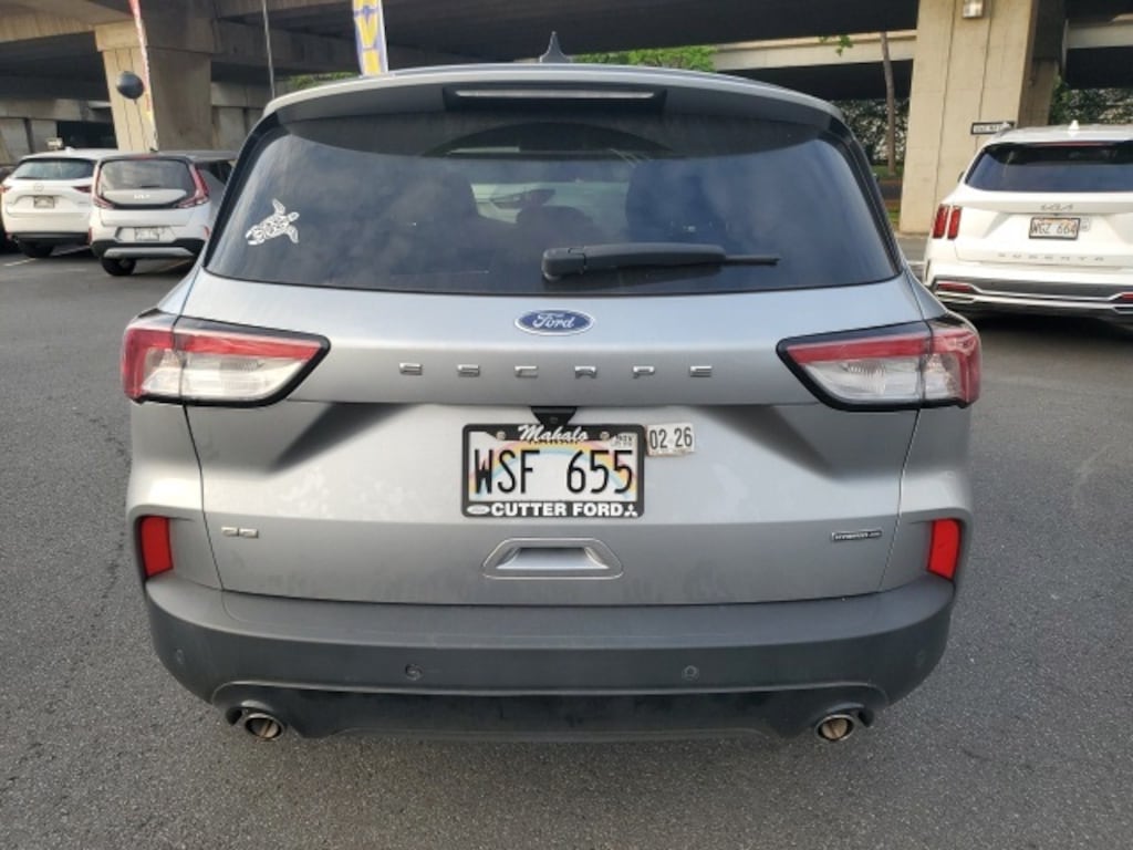 Silver Metallic 2022 Ford Escape Hybrid SE AWD eCVT 2.5L iVCT 2.5L iVCT, 2.91 Axle Ratio, 4-Wheel Disc Brakes, 6 Speakers, ABS brakes, Air Conditioning, Alloy wheels, AM/FM radio: SiriusXM, AM/FM Stereo, Auto High-beam Headlights, Automatic temperature control, Brake assist, Bumpers: body-color, Compass, Delay-off headlights, Driver door bin, Driver vanity mirror, Dual front impact airbags, Dual front side impact airbags, Electronic Fuel Door Release, Electronic Stability Control, Emergency communication system: SYNC 3 911 Assist, Exterior Parking Camera Rear, FordPass Connect, Four wheel independent suspension, Front anti-roll bar, Front Bucket Seats, Front Center Armrest, Front dual zone A/C, Front reading lights, Fully automatic headlights, Illuminated entry, Instrument Panel w/6.5" Digital Screen, Knee airbag, Low tire pressure warning, Neutral Towing Capability, Occupant sensing airbag, Outside temperature display, Overhead airbag, Overhead console, Panic alarm, Passenger door bin, Passenger vanity mirror, Pedestrian Alert Sounder, Power door mirrors, Power steering, Power windows, Radio data system, Rear anti-roll bar, Rear reading lights, Rear window defroster, Rear window wiper, Remote keyless entry, Speed control, Speed-sensing steering, Speed-Sensitive Wipers, Split folding rear seat, Spoiler, Steering wheel mounted audio controls, SYNC 3 Communications & Entertainment System, Telescoping steering wheel, Tilt steering wheel, Traction control, Trip computer, Unique Cloth Front Bucket Seats, Variably intermittent wipers, Wheels: 17" Shadow Silver-Painted Aluminum, Backup Camera / Reverse Camera / Rear View Camera, 2.5L iVCT, 2.91 Axle Ratio, 4-Wheel Disc Brakes, 6 Speakers, ABS brakes, Air Conditioning, Alloy wheels, AM/FM radio: SiriusXM, AM/FM Stereo, Auto High-beam Headlights, Automatic temperature control, Brake assist, Bumpers: body-color, Compass, Delay-off headlights, Driver door bin, Driver vanity mirror, Dual front impact airbags, Dual front side impact airbags, Electronic Fuel Door Release, Electronic Stability Control, Emergency communication system: SYNC 3 911 Assist, Exterior Parking Camera Rear, FordPass Connect, Four wheel independent suspension, Front anti-roll bar, Front Bucket Seats, Front Center Armrest, Front dual zone A/C, Front reading lights, Fully automatic headlights, Illuminated entry, Instrument Panel w/6.5" Digital Screen, Knee airbag, Low tire pressure warning, Neutral Towing Capability, Occupant sensing airbag, Outside temperature display, Overhead airbag, Overhead console, Panic alarm, Passenger door bin, Passenger vanity mirror, Pedestrian Alert Sounder, Power door mirrors, Power steering, Power windows, Radio data system, Rear anti-roll bar, Rear reading lights, Rear window defroster, Rear window wiper, Remote keyless entry, Speed control, Speed-sensing steering, Speed-Sensitive Wipers, Split folding rear seat, Spoiler, Steering wheel mounted audio controls, SYNC 3 Communications & Entertainment System, Telescoping steering wheel, Tilt steering wheel, Traction control, Trip computer, Unique Cloth Front Bucket Seats, Variably intermittent wipers, Wheels: 17" Shadow Silver-Painted Aluminum.