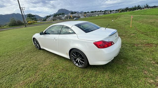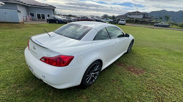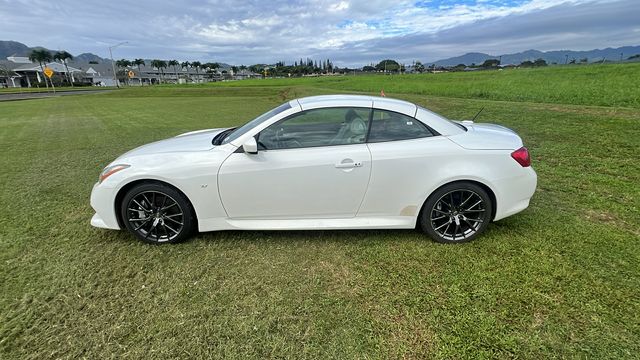 Moonlight White 2014 INFINITI Q60 IPL RWD 7-Speed Automatic 13 Speakers, 19" Split 7-Spoke Graphite Finish Wheels, 4-Wheel Disc Brakes, ABS brakes, Activation Disclaimer, Air Conditioning, Alloy wheels, AM/FM radio: SiriusXM, Anti-whiplash front head restraints, Auto tilt-away steering wheel, Auto-dimming Rear-View mirror, Automatic temperature control, Brake assist, Bumpers: body-color, CD player, Convertible HardTop, Convertible roof lining, Delay-off headlights, Driver door bin, Driver vanity mirror, Dual front impact airbags, Dual front side impact airbags, Electronic Stability Control, Exterior Parking Camera Rear, First Aid Kit, Four wheel independent suspension, Front anti-roll bar, Front Bucket Seats, Front Center Armrest, Front dual zone A/C, Front fog lights, Front reading lights, Fully automatic headlights, Garage door transmitter: HomeLink, Glass rear window, Heated & Cooled Front Bucket Seats, Heated door mirrors, Heated front seats, High intensity discharge headlights: Bi-Xenon, Illuminated entry, Illuminated Kick Plates, Integrated roll-over protection, Leather Appointed Seats, Leather Shift Knob, Leather steering wheel, Literature Kit, Low tire pressure warning, Memory seat, Navigation System, Occupant sensing airbag, Outside temperature display, Overhead airbag, Overhead console, Panic alarm, Passenger door bin, Passenger vanity mirror, Power convertible roof, Power door mirrors, Power driver seat, Power passenger seat, Power steering, Power windows, Radio data system, Radio: AM/FM w/BOSE Open Air Sound System, Rear anti-roll bar, Rear Parking Sensors, Rear Wind Deflector, Rear window defroster, Remote keyless entry, Security system, Speed control, Speed-sensing steering, Speed-Sensitive Wipers, Spoiler, Sport steering wheel, Steering wheel memory, Steering wheel mounted audio controls, Tachometer, Telescoping steering wheel, Tilt steering wheel, Traction control, Trip computer, Variably intermittent wipers, Ventilated front seats. 3.7L V6 DOHC 24V