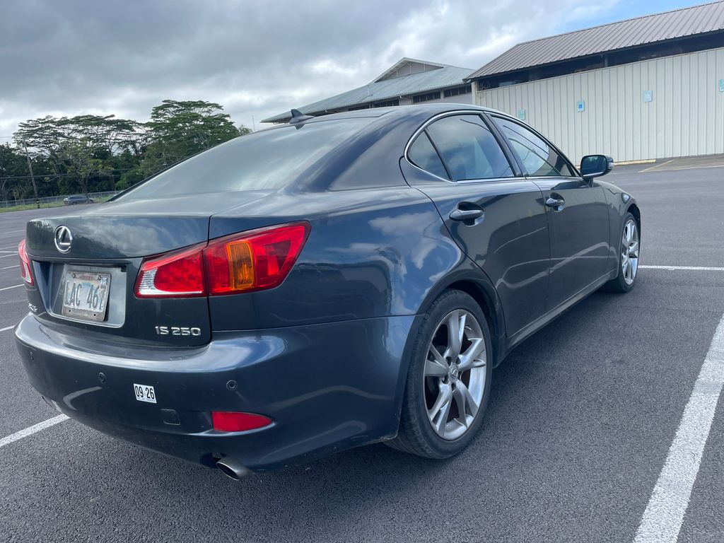 Gray 2009 Lexus IS 250 RWD 6-Speed 2.5L V6 DOHC 24V VVT-i Leather, 13 Speakers, 17" x 8" 10-Spoke Aluminum Alloy Wheels, 4-Wheel Disc Brakes, ABS brakes, Air Conditioning, Alloy wheels, AM/FM radio, Auto-dimming Rear-View mirror, Automatic temperature control, Brake assist, Bumpers: body-color, CD player, Compass, Delay-off headlights, Driver door bin, Driver vanity mirror, Dual front impact airbags, Dual front side impact airbags, Electronic Stability Control, Four wheel independent suspension, Front anti-roll bar, Front Bucket Seats, Front Center Armrest, Front dual zone A/C, Front fog lights, Front reading lights, Fully automatic headlights, Garage door transmitter: HomeLink(R), Heated door mirrors, Illuminated entry, Knee airbag, Leather Seat Trim, Leather steering wheel, Lexus Premium Audio System, Low tire pressure warning, Occupant sensing airbag, Outside temperature display, Overhead airbag, Overhead console, Panic alarm, Passenger door bin, Passenger vanity mirror, Power door mirrors, Power driver seat, Power moonroof, Power passenger seat, Power steering, Power windows, Radio data system, Rear anti-roll bar, Rear reading lights, Rear seat center armrest, Rear window defroster, Remote keyless entry, Security system, Speed control, Speed-sensing steering, Speed-Sensitive Wipers, Steering wheel mounted audio controls, Tachometer, Telescoping steering wheel, Tilt steering wheel, Traction control, Trip computer, Turn signal indicator mirrors, Variably intermittent wipers, Leather.